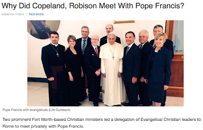 3. The cell phone conversation from Pope Francis to Word Faith pastors. In my Plumbline Newletter titled "Who is Winning the Infiltration Battle?" I examine the spiritual union with Rome and reported Kenneth Copeland's and James Robison's responses to the Pope's cell appeal: