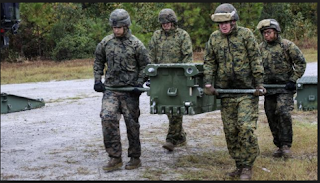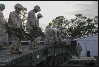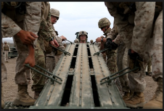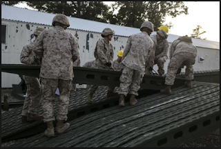 It really was inspiring to watch these young devil dogs as they strained to lift each piece of solid steel, and then bolt each plate piece in place. All day long as the rain came down, they counted and lifted in unison... piece by piece... knuckle busting... dirty... sandy... grubby hard work.